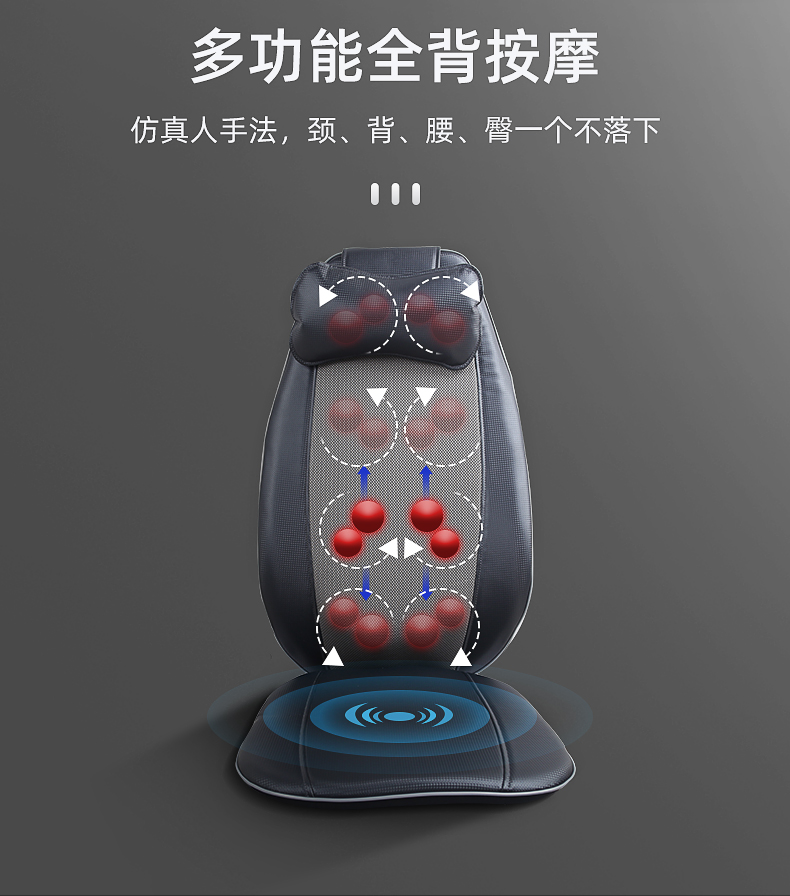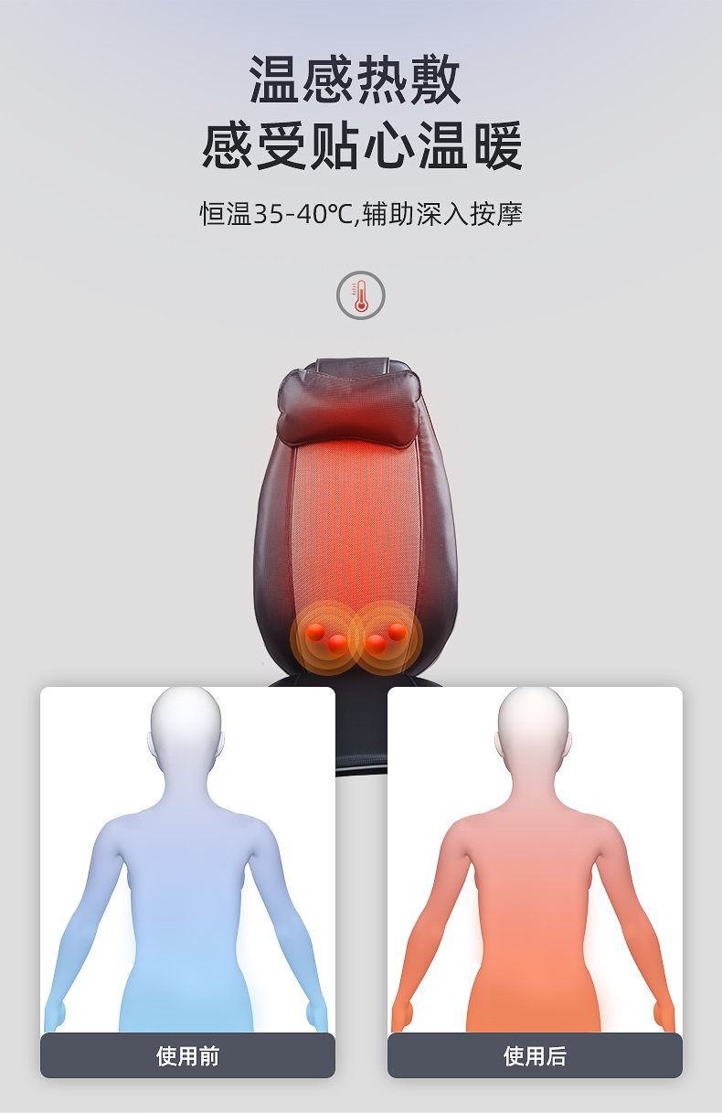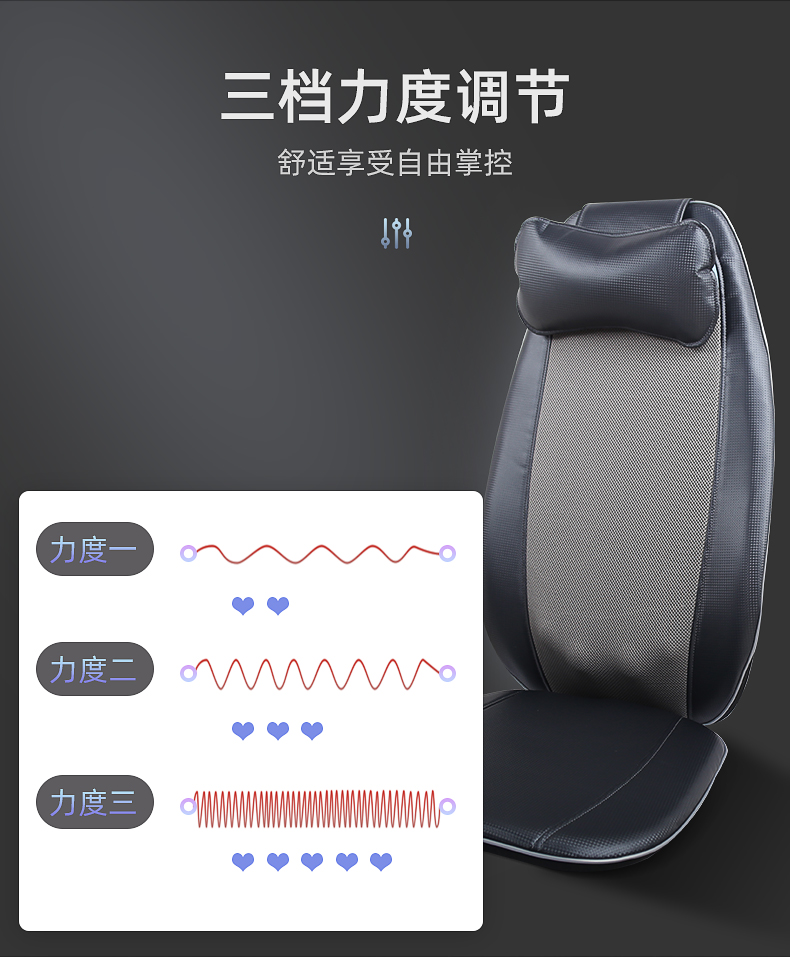 背部揉捏功能,三檔按摩力度可供選擇,背部定點(diǎn)按摩