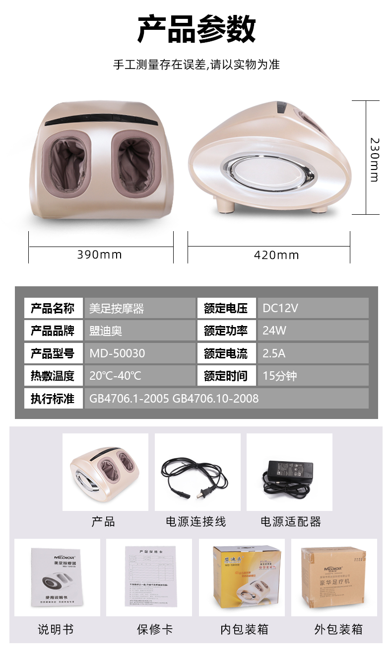 功能特征:腳底滾壓、刮痧、氣囊擠壓三段式按摩,2擋力度調(diào)節(jié),3種模式選擇,