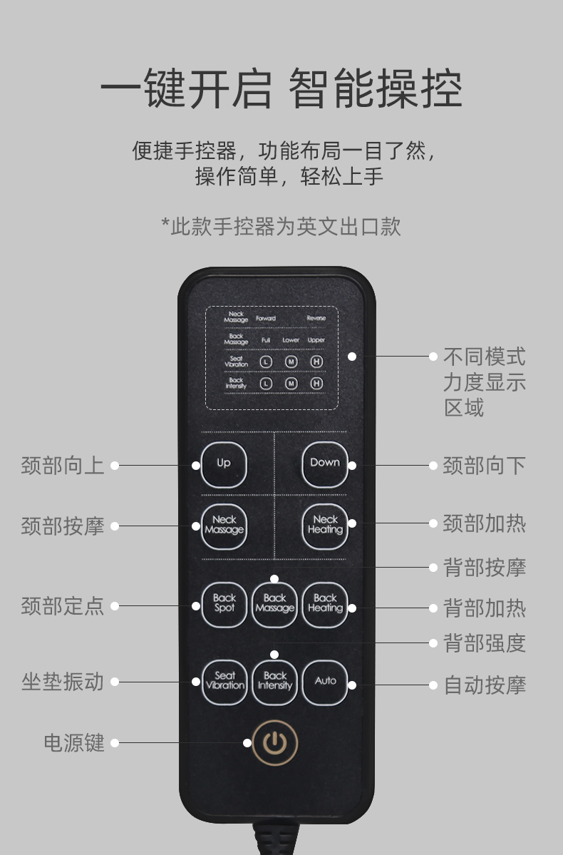 單震動座椅按摩,3級強(qiáng)度(單/雙震動可定制)