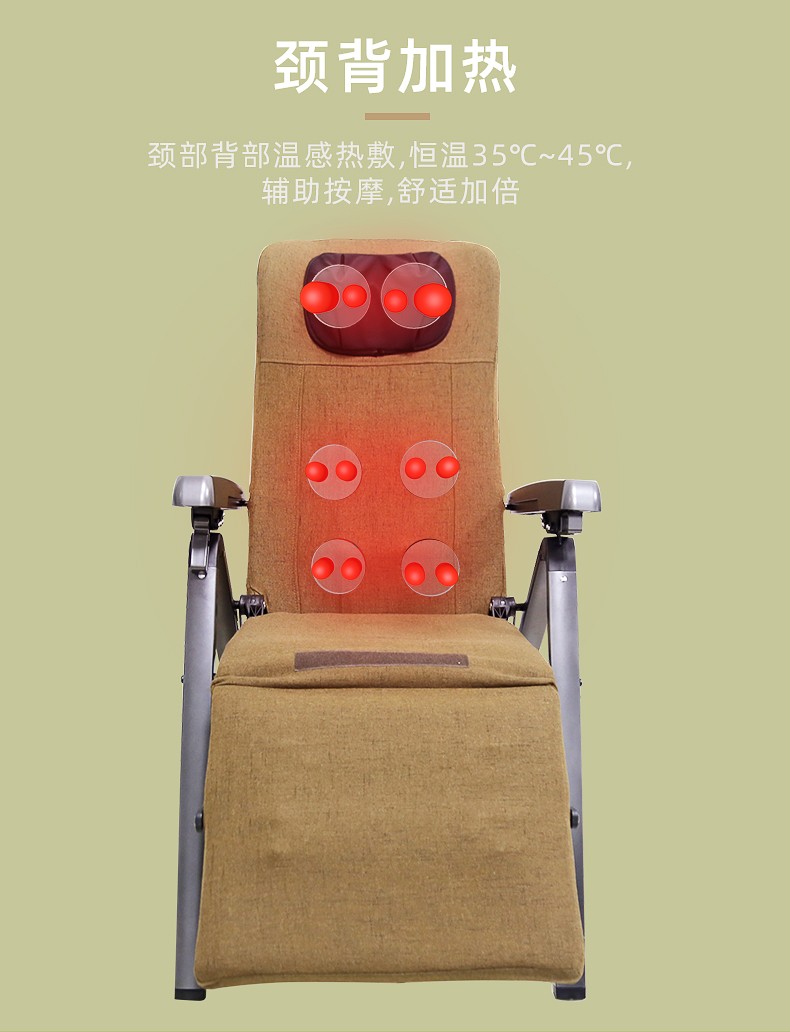 1.頸部:創(chuàng)新壓肩按摩,正反轉(zhuǎn)揉捏,上下可調(diào)節(jié)高矮適應(yīng)不同人。